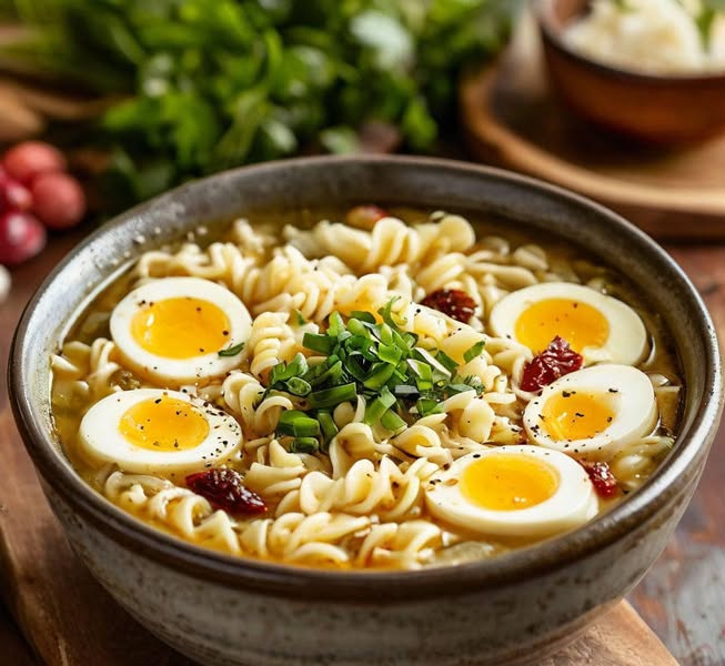 Soupe de poulet aux nouilles et œuf